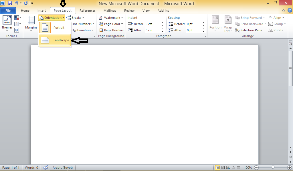 كيف تجعل صفحة الورد بالعرض او بالطول في الورد 2007 و 2010 Youtube
