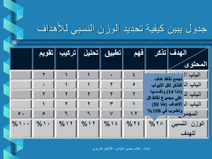 خطوات بناء جدول مواصفات لاختبار تحصيلي د سالم أحمد باوادي فيسبوك
