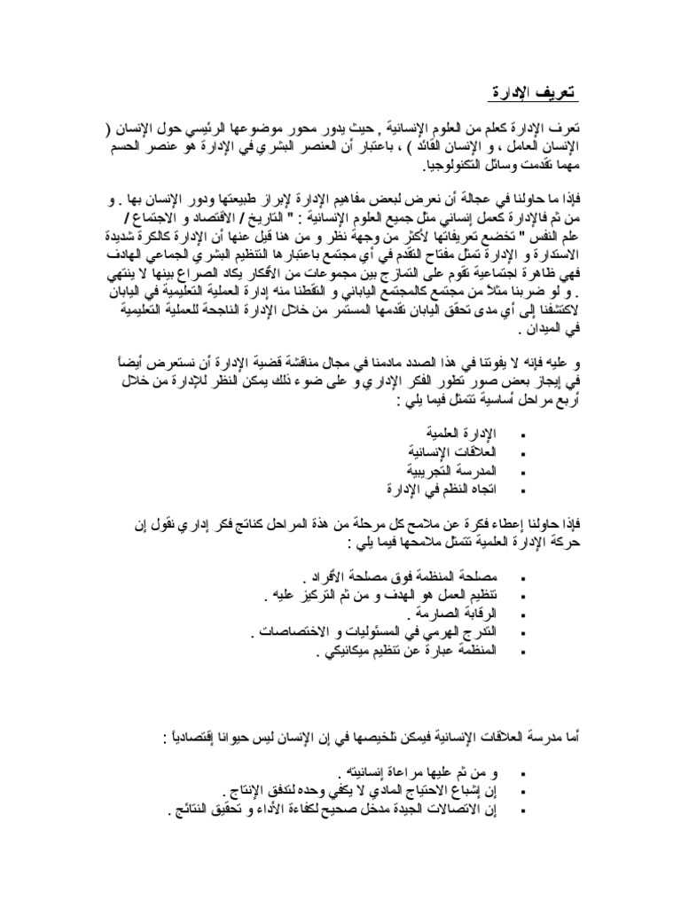 بحث عن مبادئ تنظيم الادارة يلا نذاكر