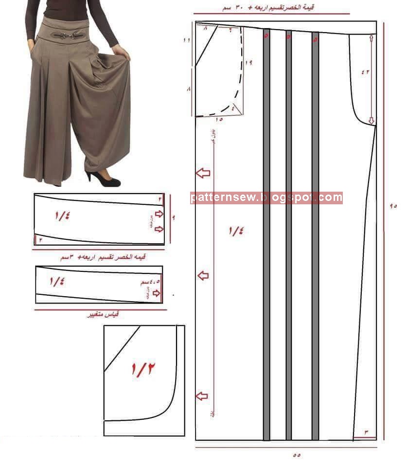 طريقة تفصيل سروال بالصور تعلم الخياطة اون لاين Easy Sewing Patterns Sewing Ruffles Pattern Fashion