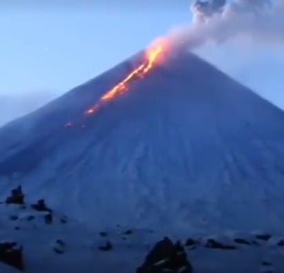 لحظة ثوران بركان جزيرة كامتشاتكا الروسية وخروج النار من وسط الجليد فيديو اليوم السابع