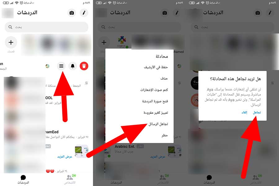 كيف الغي تجاهل الرسائل في الماسنجر
