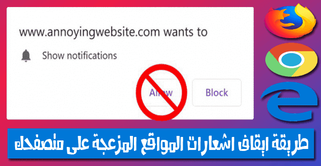 طريقة حظر إشعارات المواقع على متصفح كروم و موزيلا فايرفوكس و ايدج