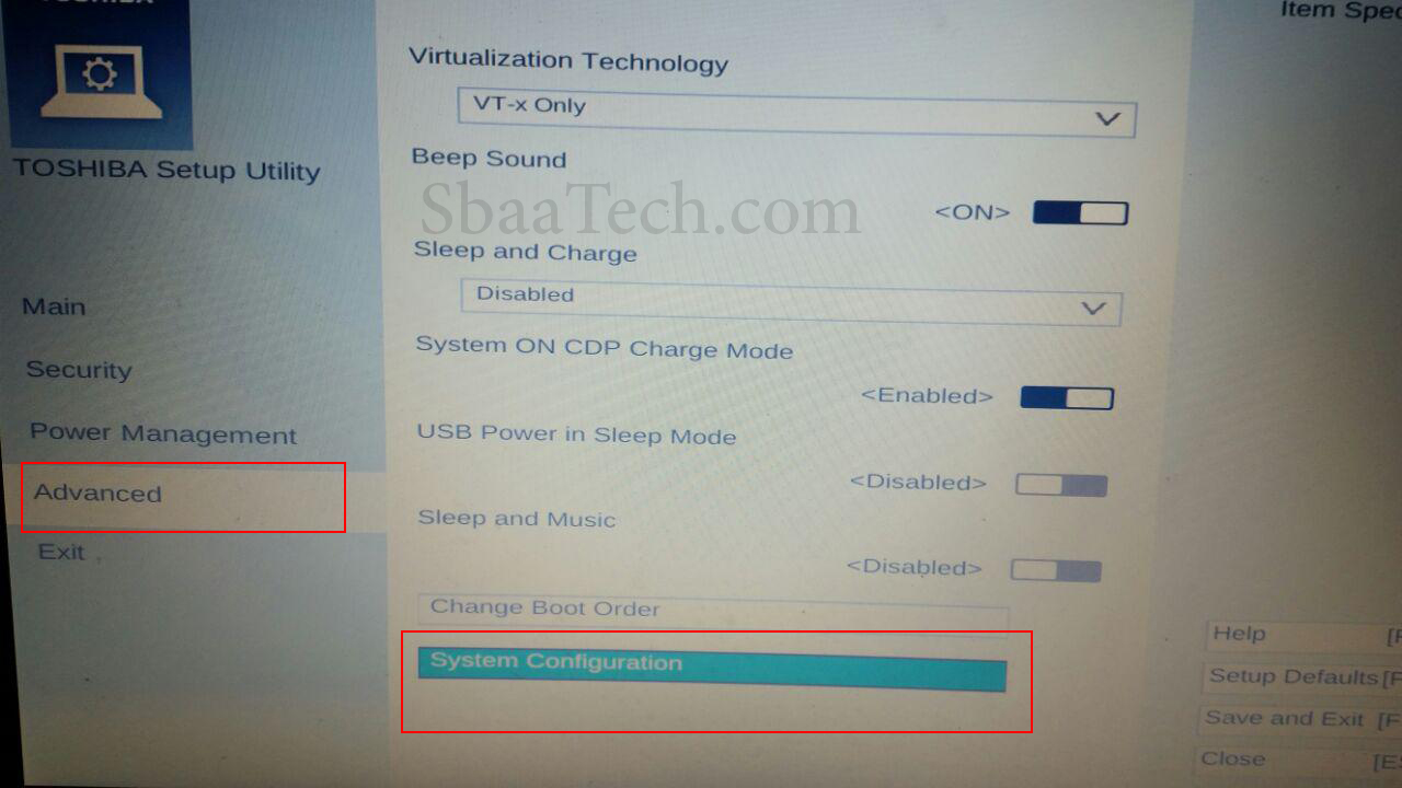 ضبط أعدادات ال Bios للاب توبات Toshiba Laptop للأقلاع من السواقه او الفلاش