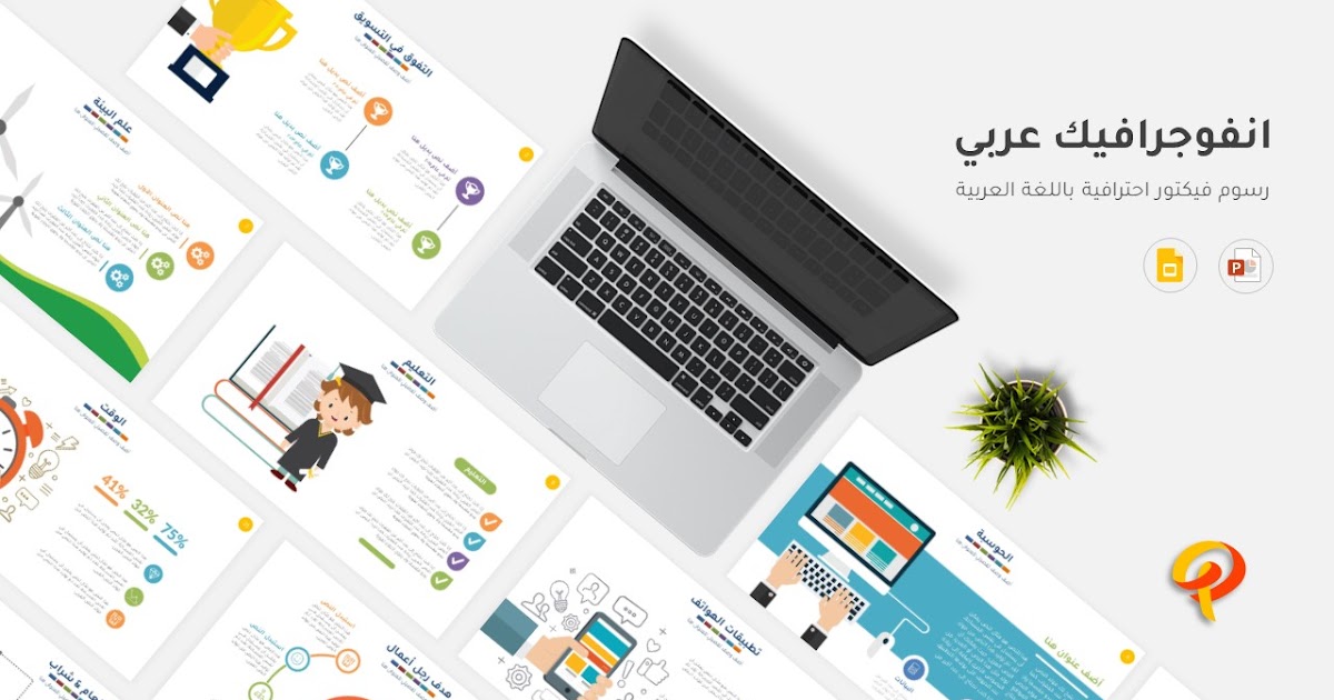25 شريحة بوربوينت انفوجرافيك عربي مع رسوم وشخصيات ادركها بوربوينت