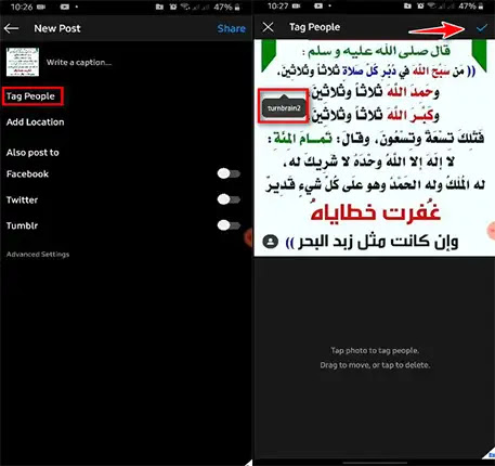 شرح طريقة اضافة تاق على الصور في الانستقرام