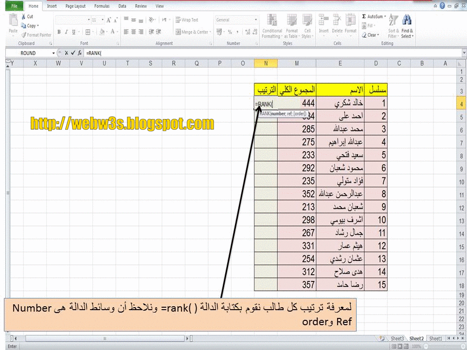 الدرس 81 شرح دالة الترتيب Rank فى الاكسل Excel مدرسة الويب Web School