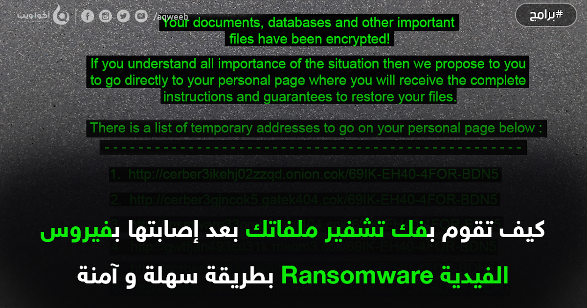 كيف تقوم بفك تشفير ملفاتك بعد إصابتها بفيروس الفدية Ransomware أكوا ويب