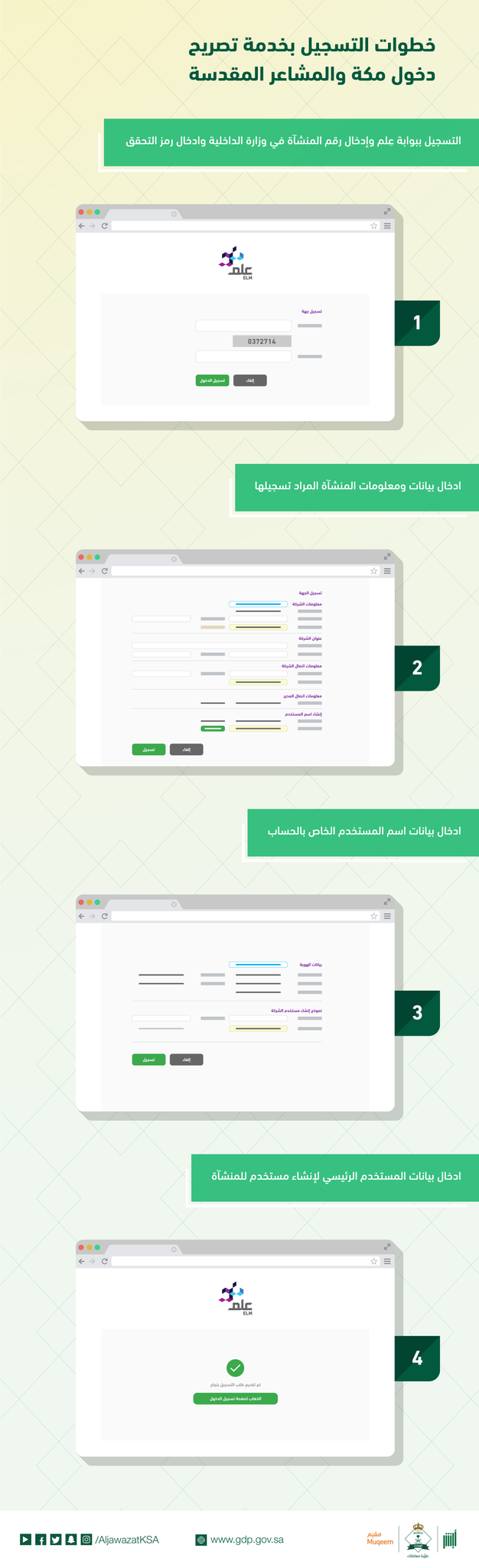 الجوازات السعودية Twitter પર بإمكان الشركات والمؤسسات الغير مسجلة بمنصة مقيم الإلكترونية التسجيل بخدمة تصريح دخول مكة والمشاعر المقدسة لإصدار تصاريح الدخول الخاصة بالمكلفين للعمل من المقيمين أثناء موسم الحج Https T Co Uovuwc2abv
