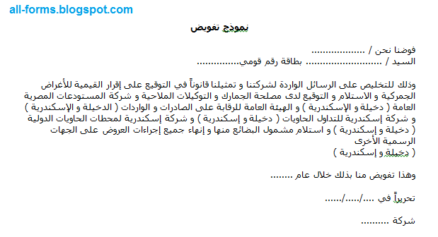 بسهولة نموذج وصيغة تفويض من شركة الي مستخلص جمركي