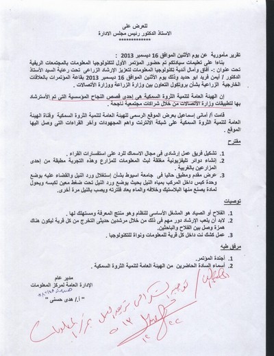 تقرير مأمورية المؤتمر الاول لتكنولوجيا المعلومات بالمجتمعات الريفية الموقع الرسمى للهيئة العامة لتنمية الثروة السمكية
