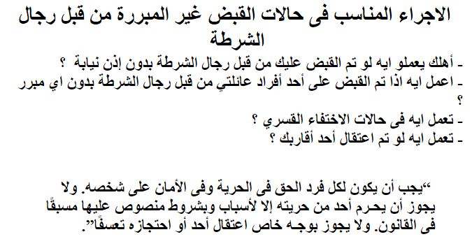 معلومات المحامي الاجراء المناسب فى حالات القبض غير المبررة من قبل رجال الشرطة