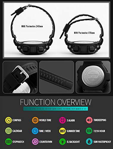 ساعة رياضية للرجال مليتاري متعددة الوظائف مضادة للماء 50 متر وعد تنازلي 3 منبه Amazon Ae