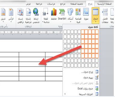 كيفية عمل جدول على ورد 2010