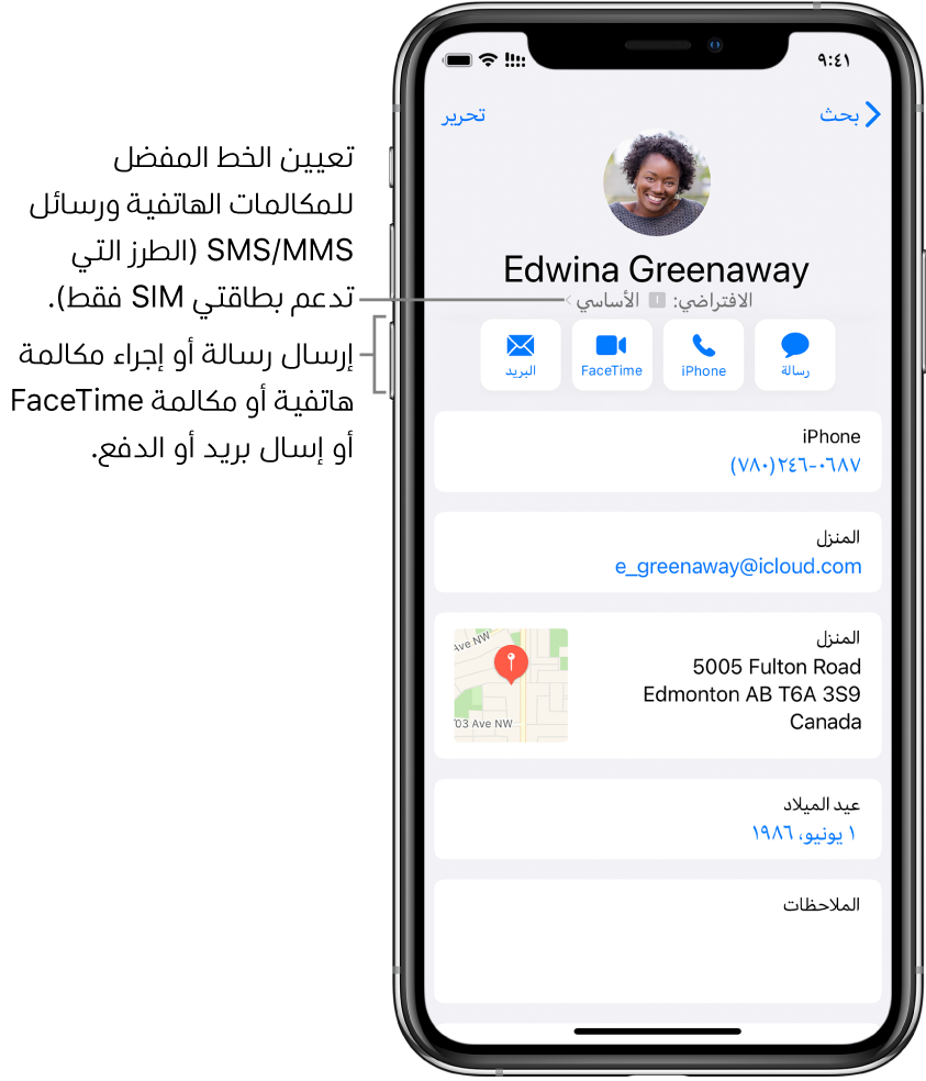 إضافة واستخدام معلومات جهات الاتصال على الـ Iphone الدعم Apple