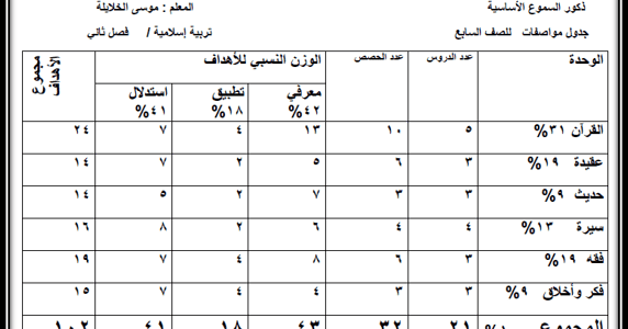 جدول المواصفات وتحليل المحتوى لجميع المواد 1440 حل التعليمي