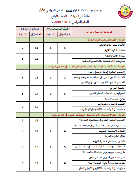 جدول مواصفات الاختبار Pdf