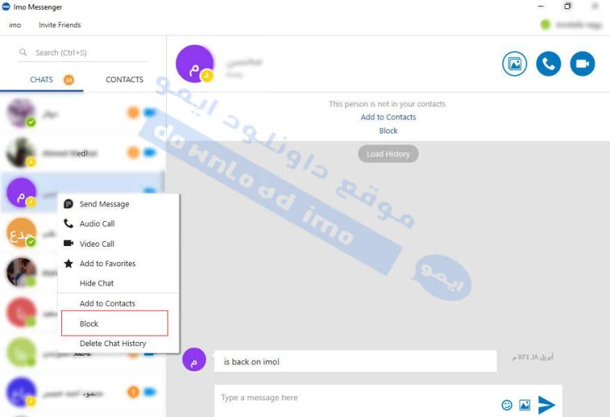 كبف يمكنك حظر شخص على برنامج ايمو للكمبيوتر