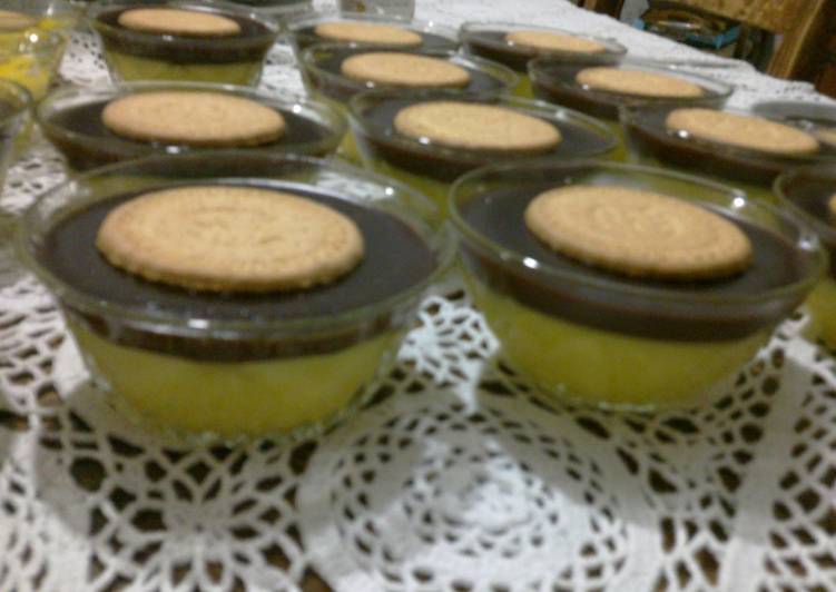 طريقة عمل طبقات الكاسترد مع الكاكاو و البسكويت زاكي