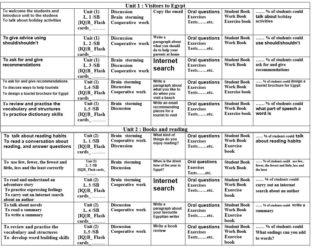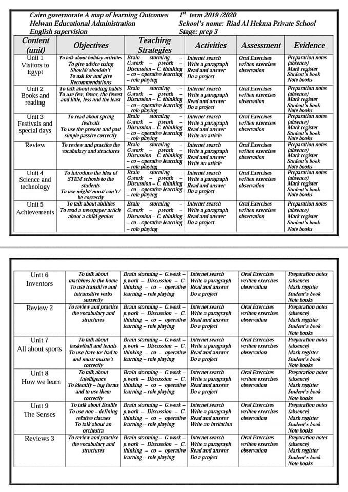 كيفية عمل خريطة المنهج ونواتج التعلم انجليزي