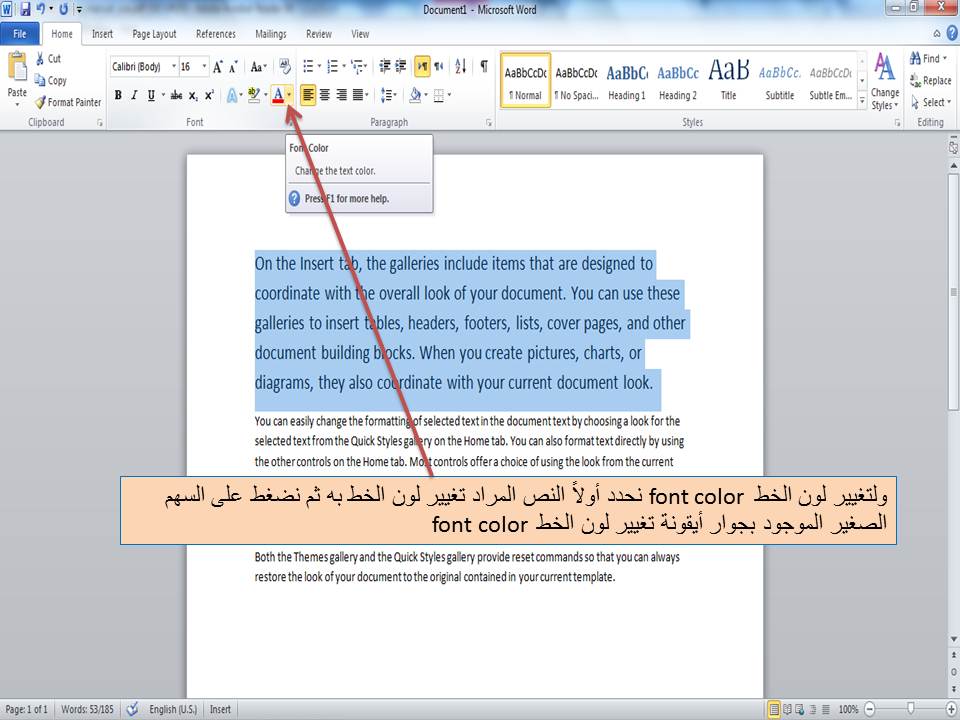 دروس معالجة النصوص ب Word الدرس 1 الجزء 3 كتابة النص وتغيير شكله حجمه ولونه Youtube