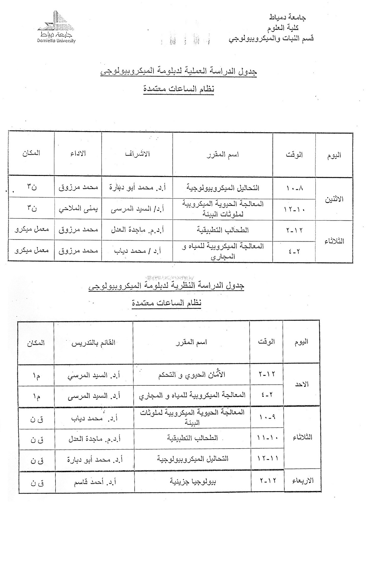 دبلومه الميكروبيولوجى كلية العلوم جامعة دمياط علومنجى دوت كوم