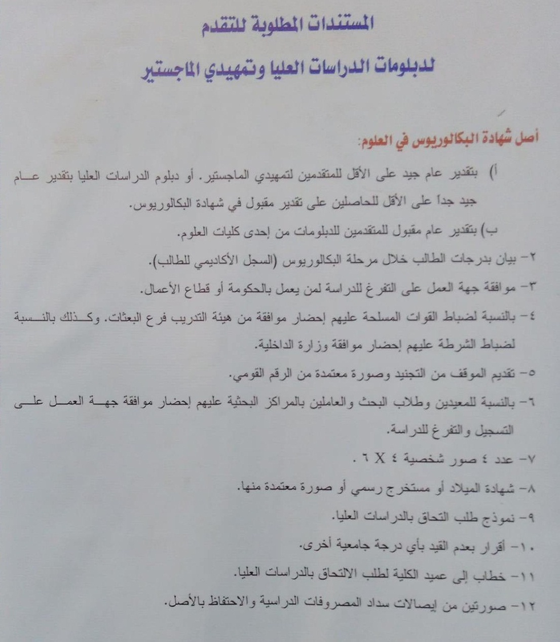 القواعد والشروط اللازمة للقبول في الدبلومة