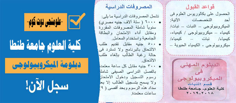دبلومة الميكروبيولوجى كلية العلوم جامعة طنطا علومنجى دوت كوم