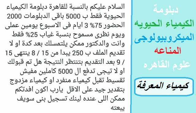 دبلومة الكيمياء الحيويه و الميكروبيولوجى التطبيقيه والمناعه علوم القاهره Diploma Of Biochemistry كيمياء المعرفة
