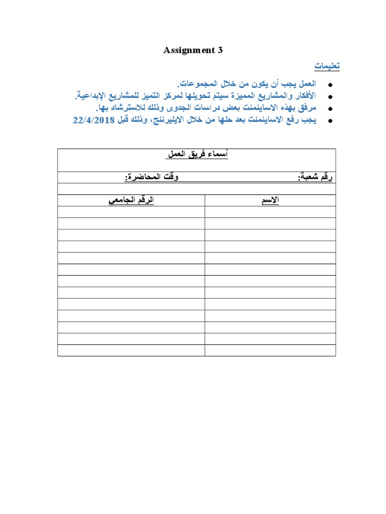 نموذج تصميم دراسة جدوى أولية الاسايمنت 3
