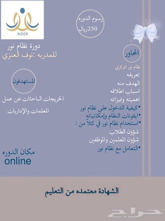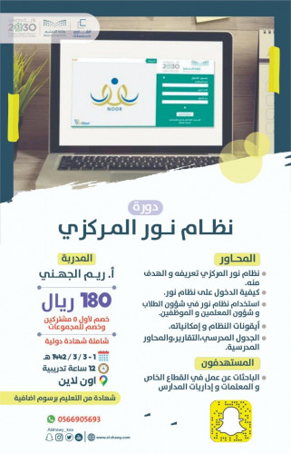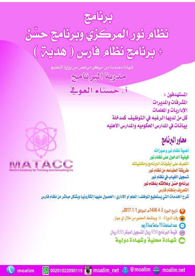 دورة نظام نور المركزي وبرنامج حس ن منصة المعلم للتدريب والاستشارات Matacc