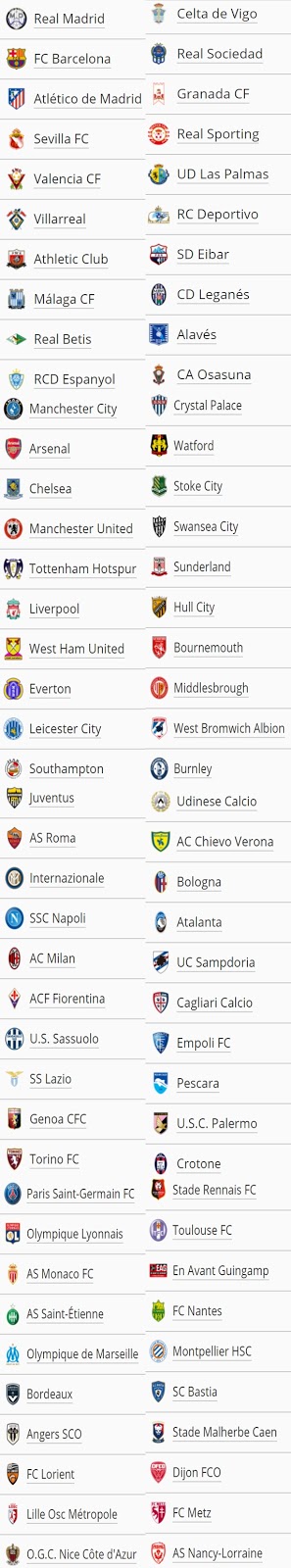 أسماء جميع الفرق فى بيس 2017 جميع الدوريات تكنو جيمز