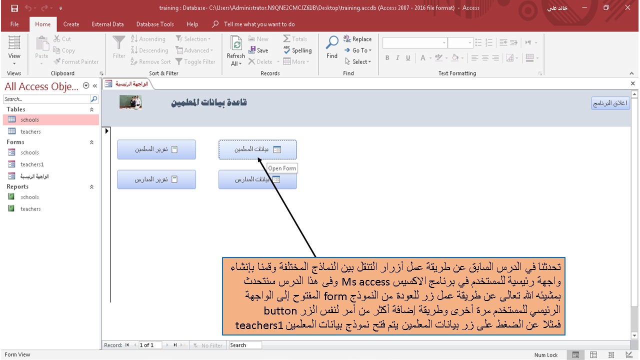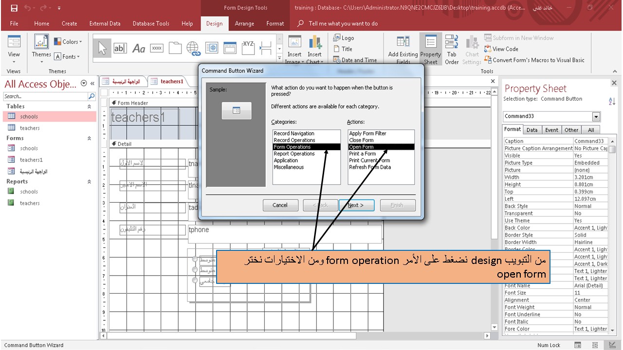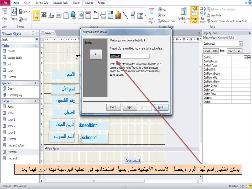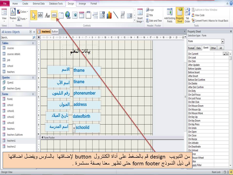 إضافة أداة الكنترول Button واستخدامها فى إضافة أزرار التنقل بين السجلات في النموذج Form في برنامج الاكسيس Ms Access مدرسة الويب Web School