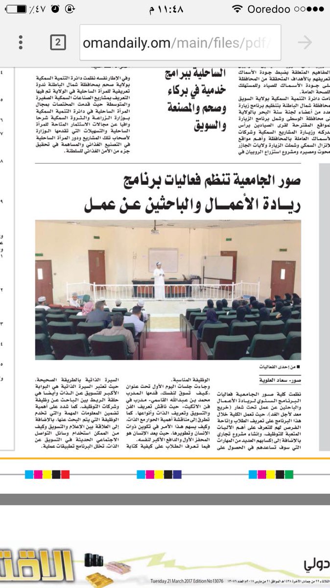كلية صور الجامعية On Twitter صور الجامعيه تنظم فعاليات برنامج ريادة الاعمال والباحثين عن عمل