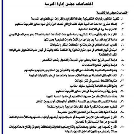 حمل تشكيل مجلس إدارة المدرسة واختصاصاته وخطة المجلس والبرنامج الزمنى وجميع سجلات مجلس إدارة المدرسة