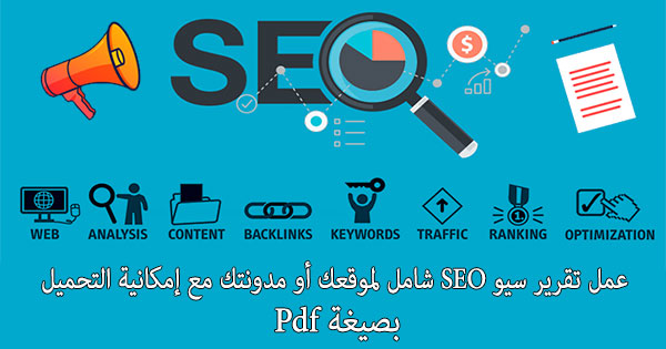 عمل تقرير سيو Seo شامل لموقعك أو مدونتك مع إمكانية تحميله بصيغة Pdf