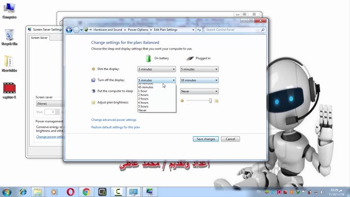 طريقة الغاء وضع سكون الشاشة فى جهاز الكمبيوتر والاب توب Sleep ويندوز 7 Youtube