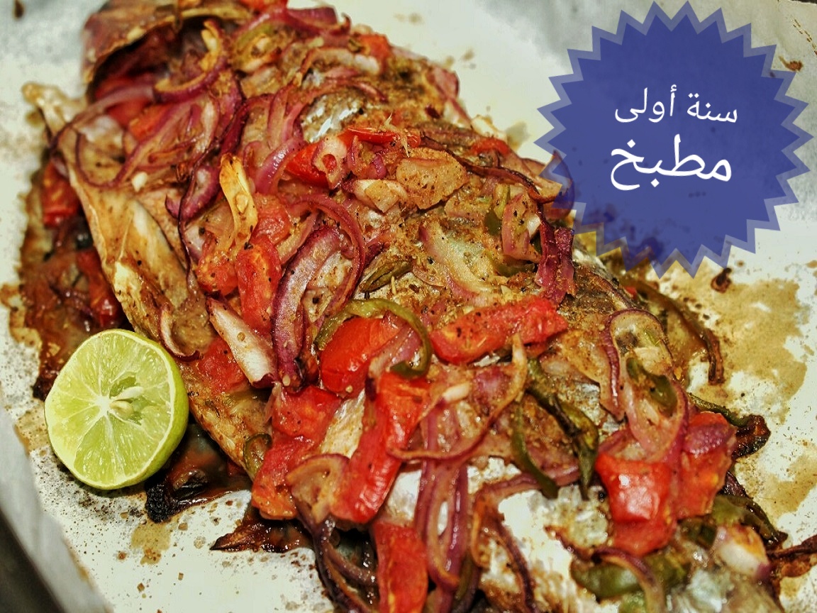 طريقة عمل السمك البلطي في الفرن مع البصل و الفلفل و الطماطم و الثوم سنة أولى مطبخ