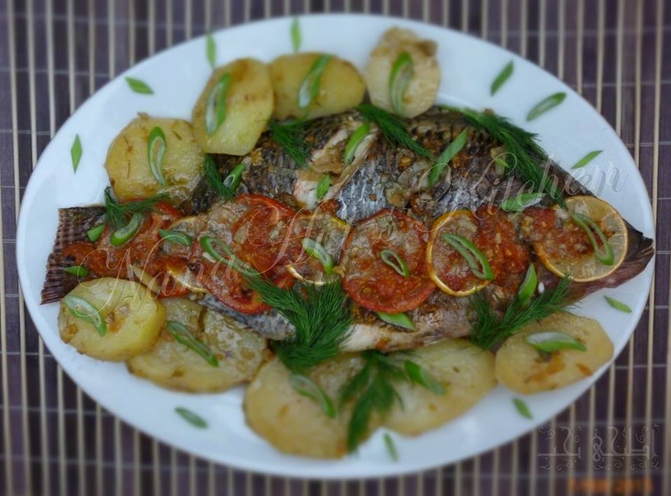 منيو غداء اليوم طريقة عمل صينية سمك بلطي بالفرن لهلوبه
