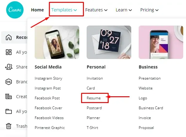 تصميم سيرة ذاتية احترافية عبر الإنترنت مجانا Canva