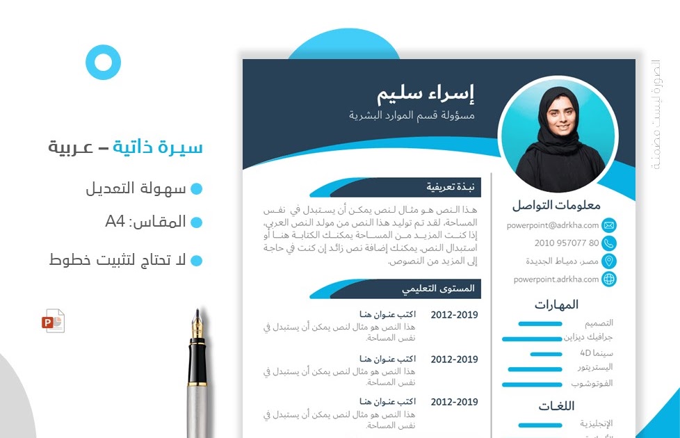 بوربوينت سيرة ذاتية باللغة العربية للتقديم على الوظائف ادركها بوربوينت