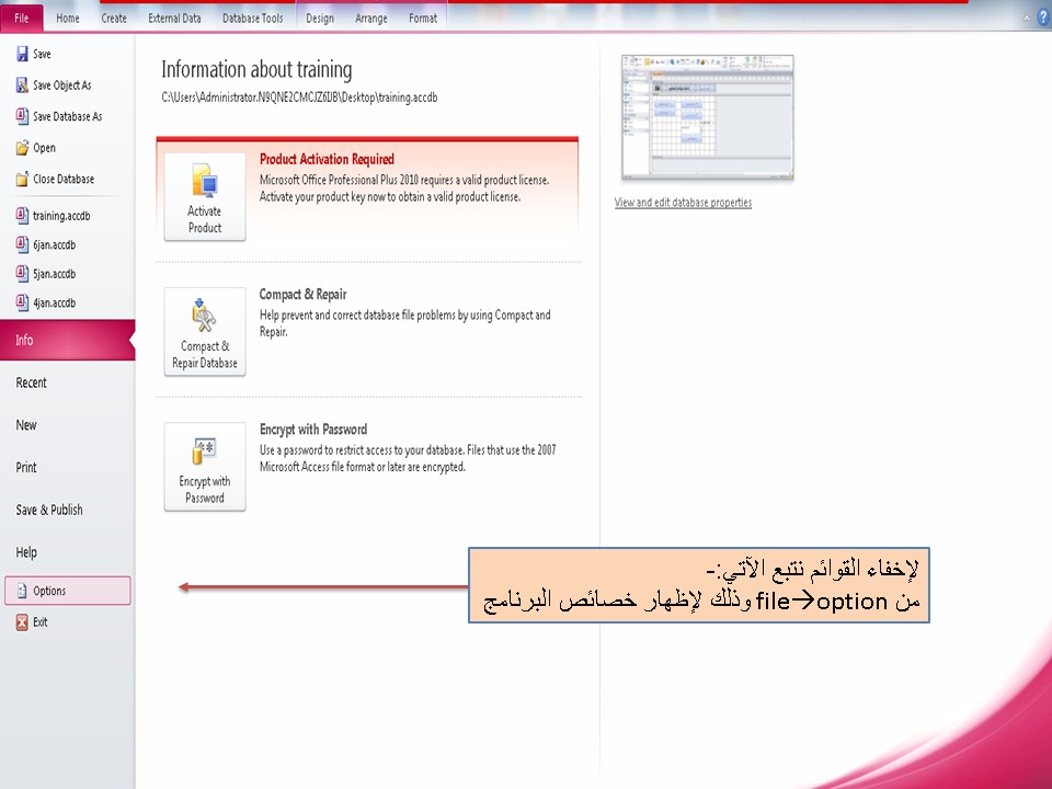 اخفاء شاشة وقوائم الاكسيس Ms Access عند فتح وتشغيل البرنامج مدرسة الويب Web School