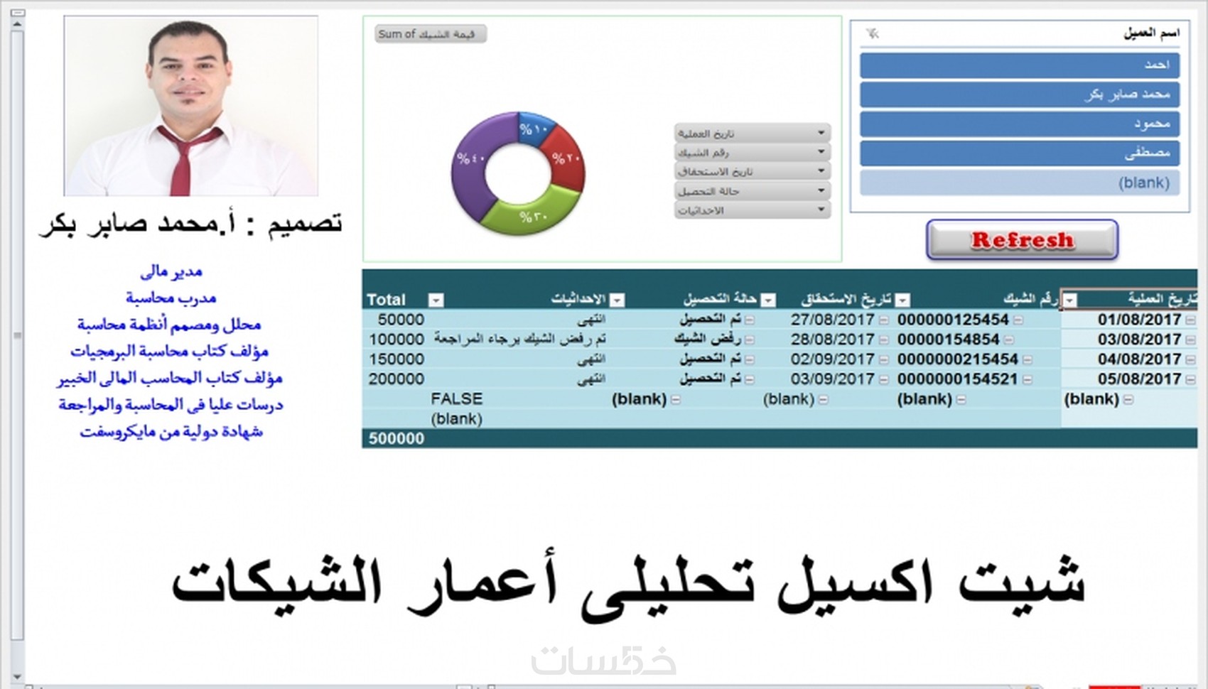 شيت اكسيل تحليلى أعمار الشيكات فيديو شرح تفصيلى للشيت خمسات