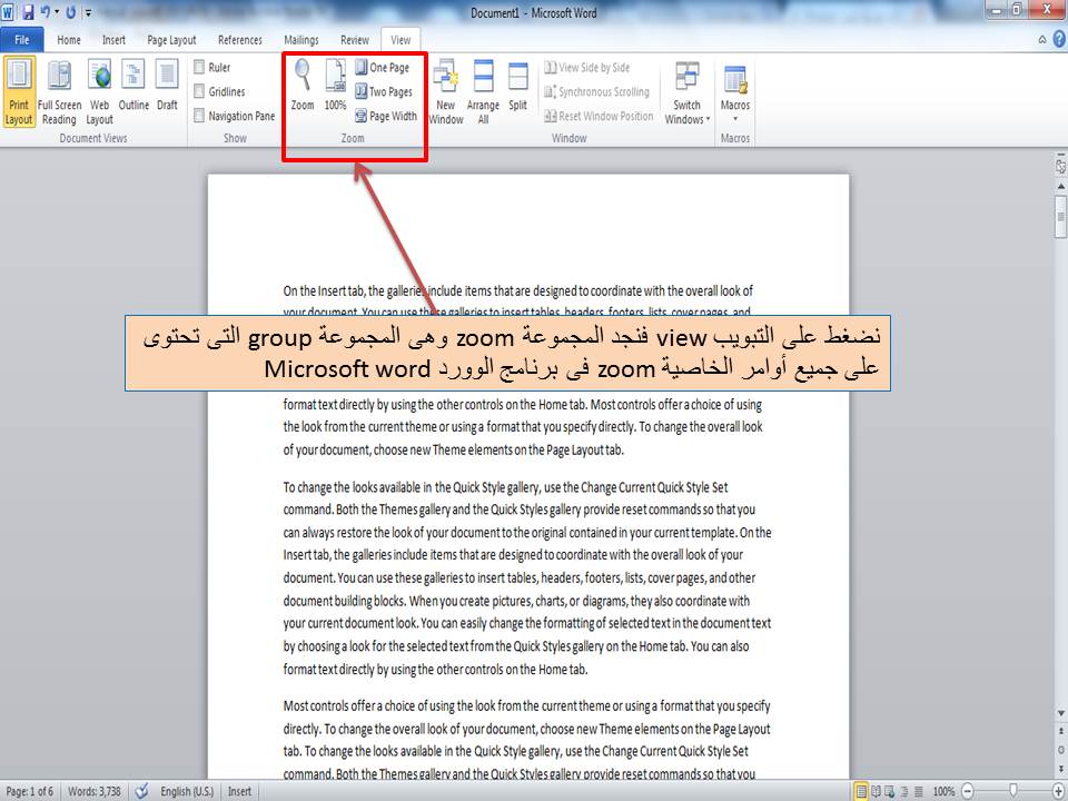 مهارة استخدام خاصية Zoom تكبير وتصغير رؤية الملف فى برنامج الوورد Microsoft Word مدرسة الويب Web School