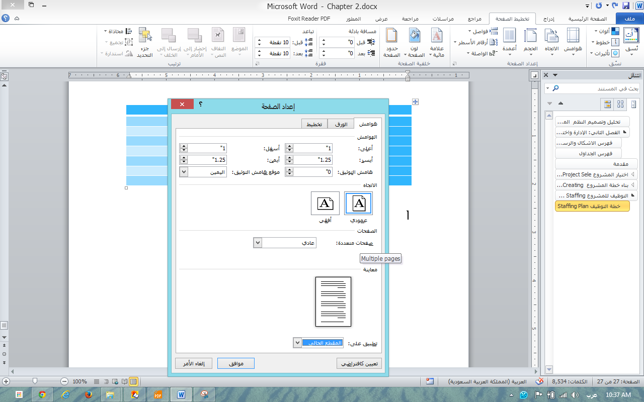 طريقة إدراج صفحة أفقية الاتجاه في مستند وورد عمودي الاتجاه مدرسة زاد