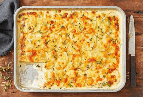 صينية بطاطس بالجبن في الفرن على اصولها طريقة