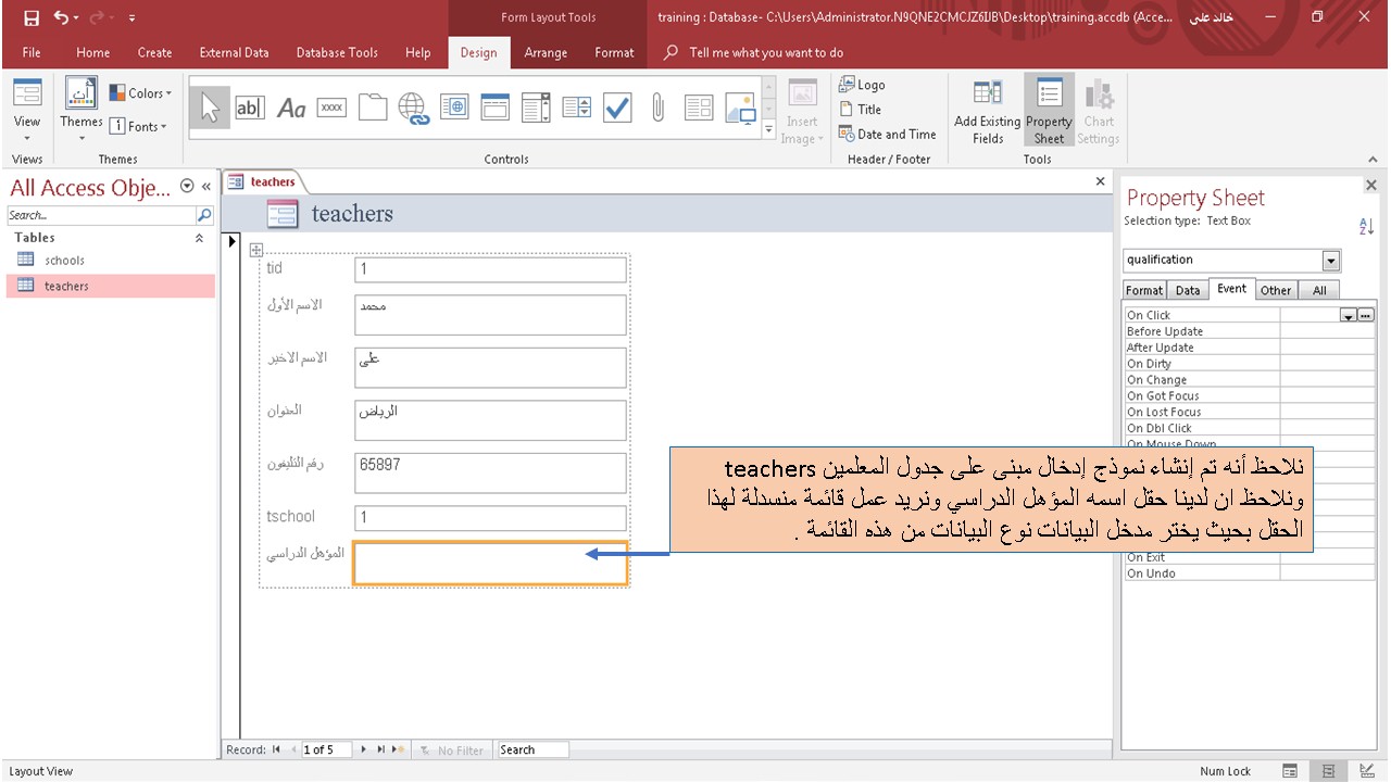طريقة إنشاء قائمة منسدلة Combo Box فى نموذج إدخال بيانات وإدخال بياناتها يدويا فى برنامج الاكسيس Ms Access مدرسة الويب Web School