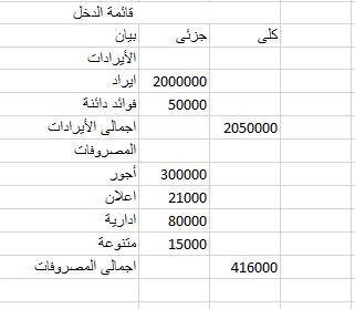 مكونات قائمة الدخل للمبتدئين