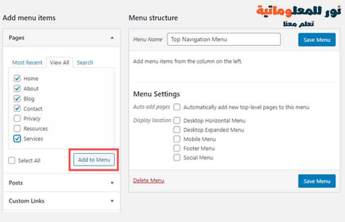 كيفية إضافة قائمة التنقل في ووردبريس دليل المبتدئين نور للمعلوماتية