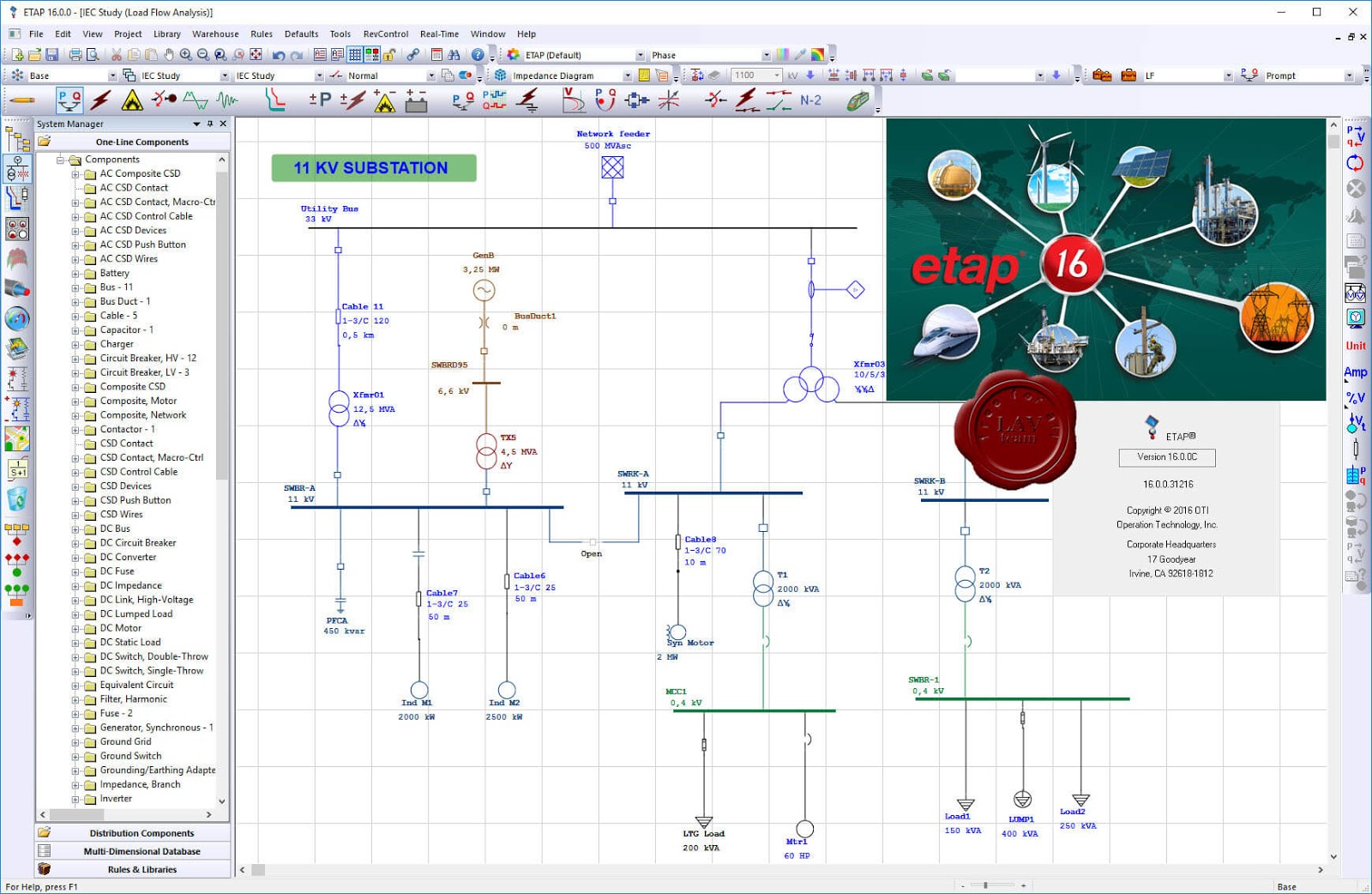 لكبار المهندسين وتخصص الإتصالات والقوى الكهربائية العملاق Etap Power System 6 0 0 كاملا الشرح زيزووم للأمن والحماية